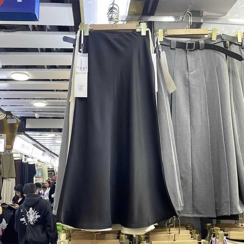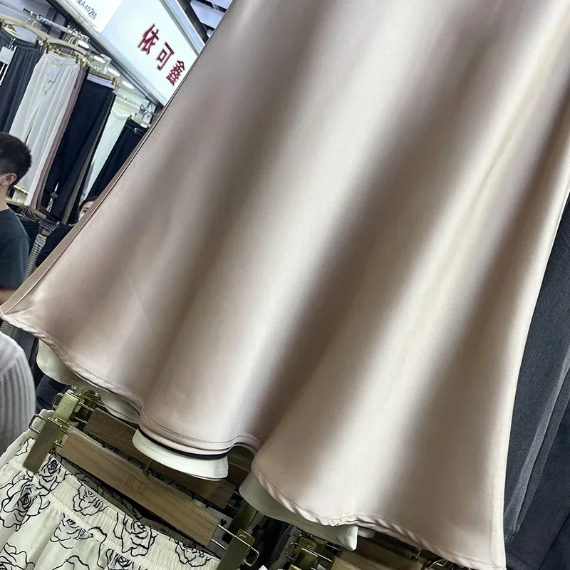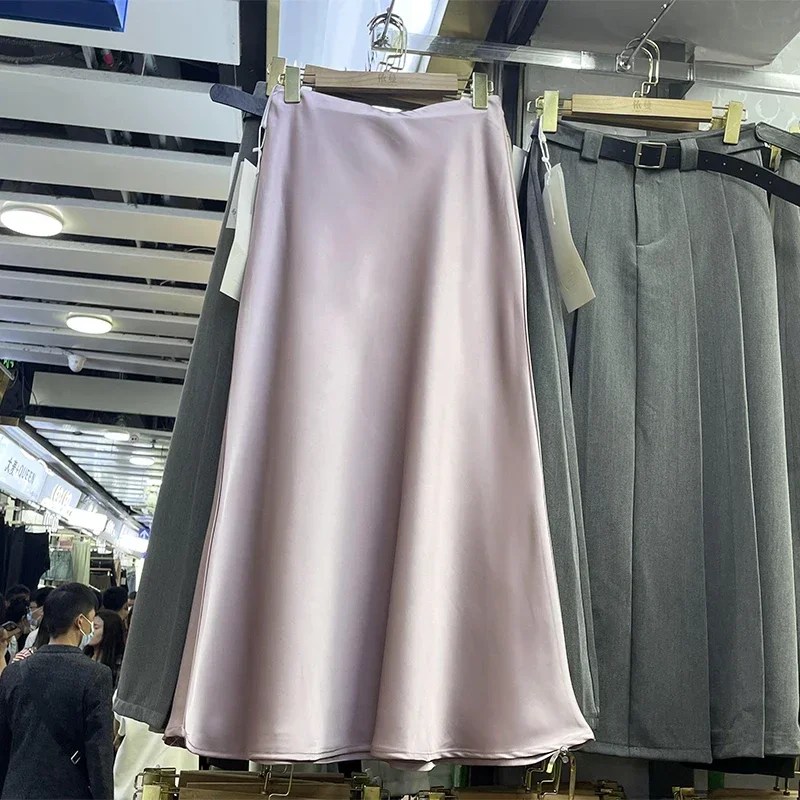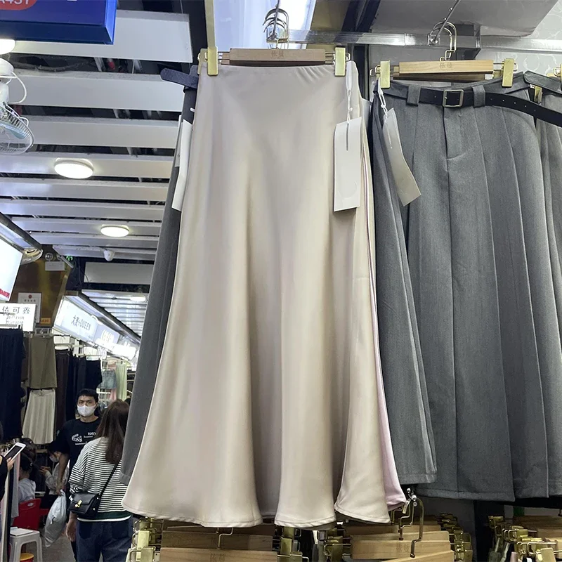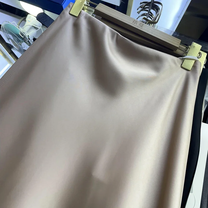 Elegant Women‘s Skirts High Waist Satin Silk Long Skirt Office Ladies Korean Fashion Solid Champagne Fishtail A-line Skirt Women