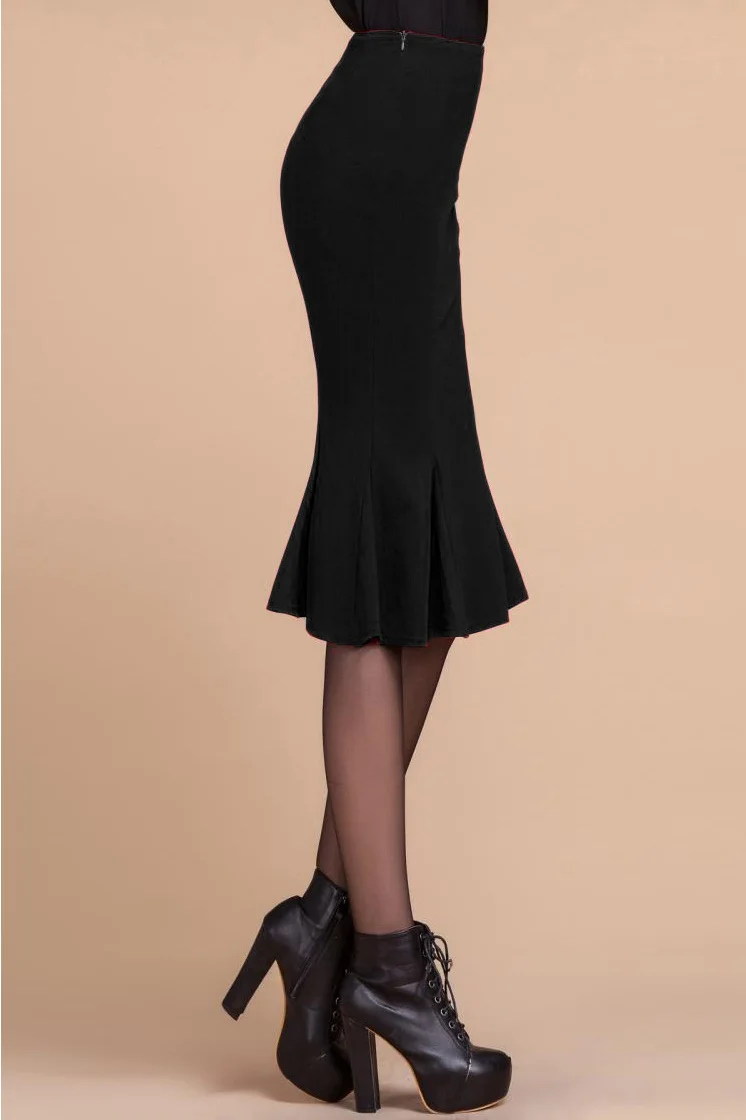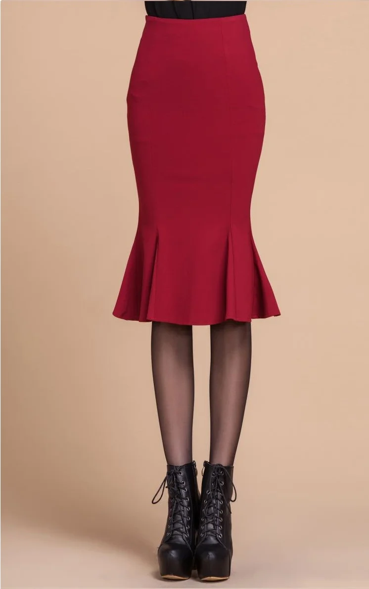 High waist fishtail skirt skirt in the long ruffled slim large size bag hip stretch skirt