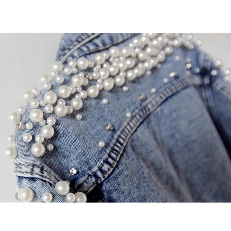 Korean 2026 Spring Autumn Edition Heavy Industry Fashion Nail Bead Short Denim Coat Women's Nine inch sleeve Cowboy Jackets tops
