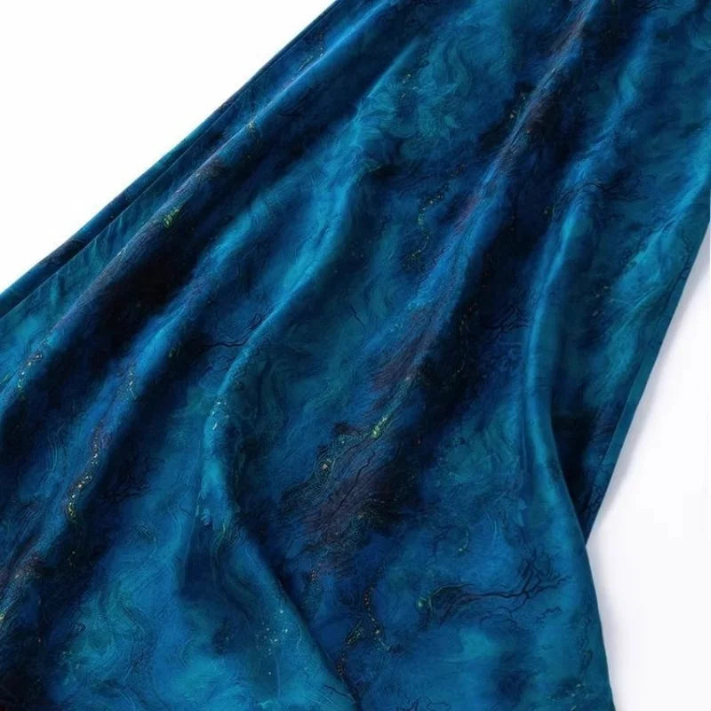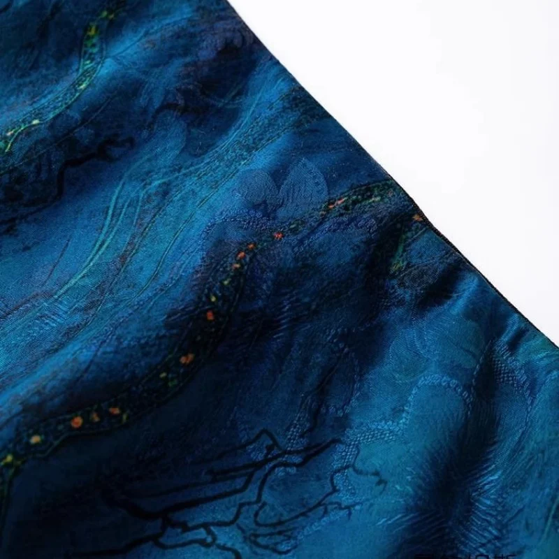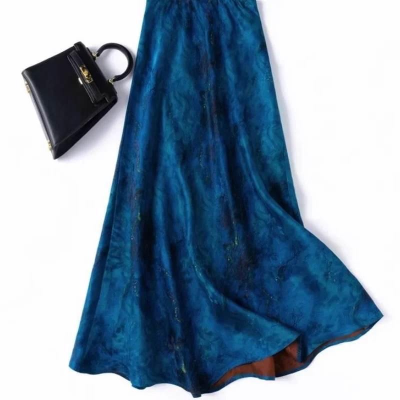 Limiguyue Blue High Waist Satin Skirt Women Flower Print Midi Skirts Casual Slim Silk Fishtail Spring Long Skirt Vintage 537A