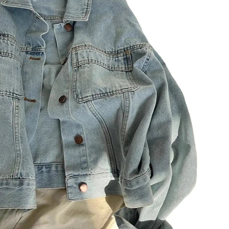 New Ins Korean Wash Cotton Retro Denim Jacket Women's Spring and Autumn Thin Korean Version Loose Short Long Sleeve Shirt