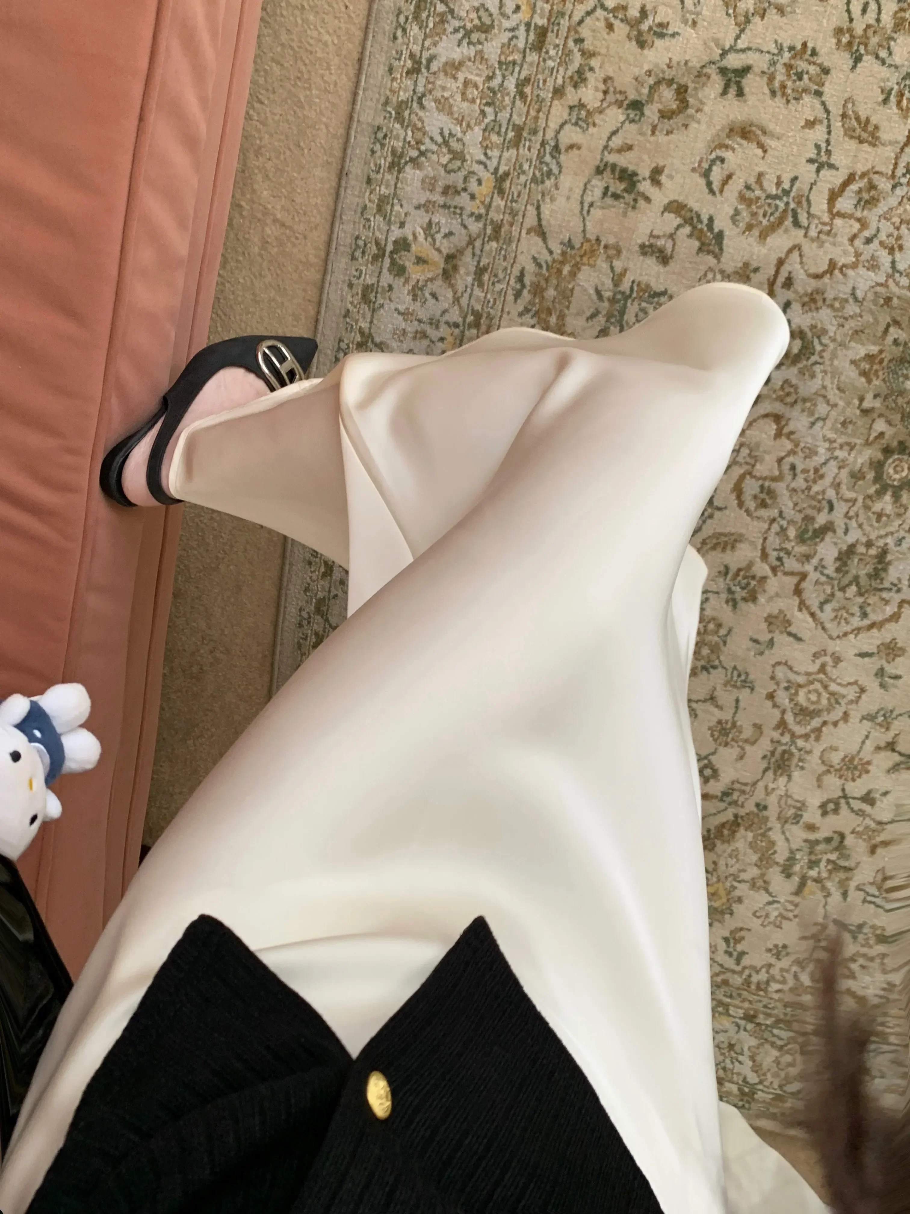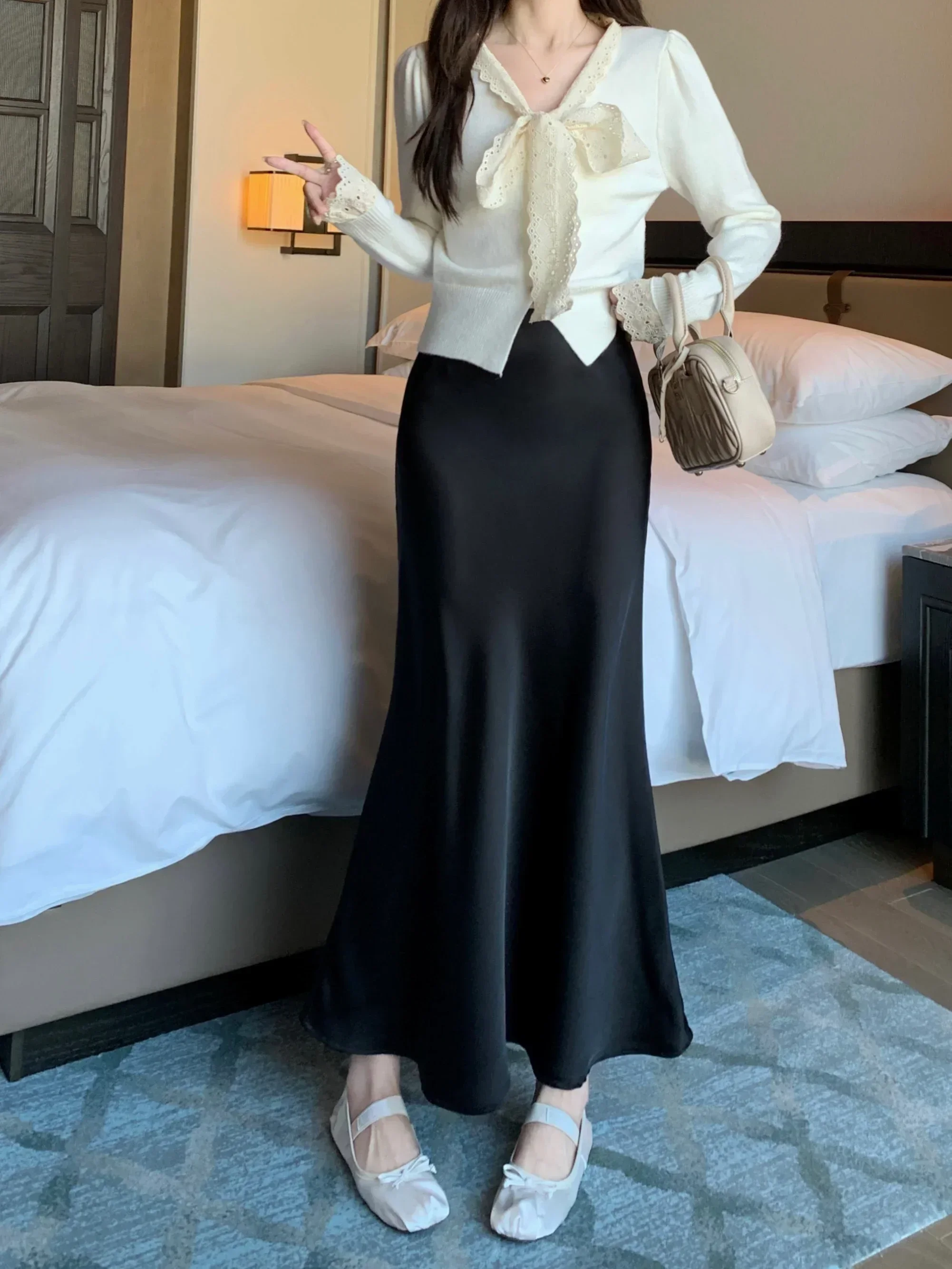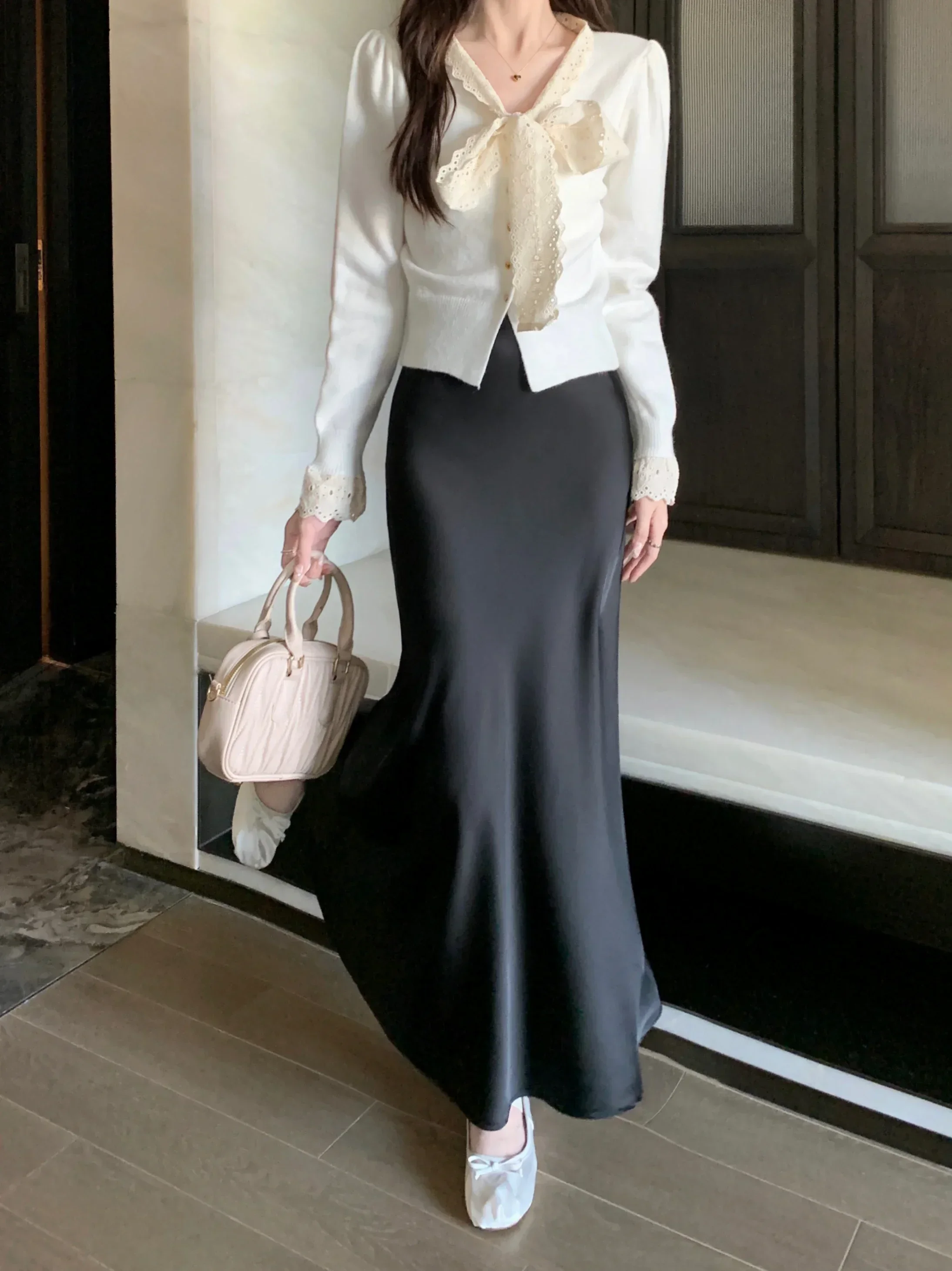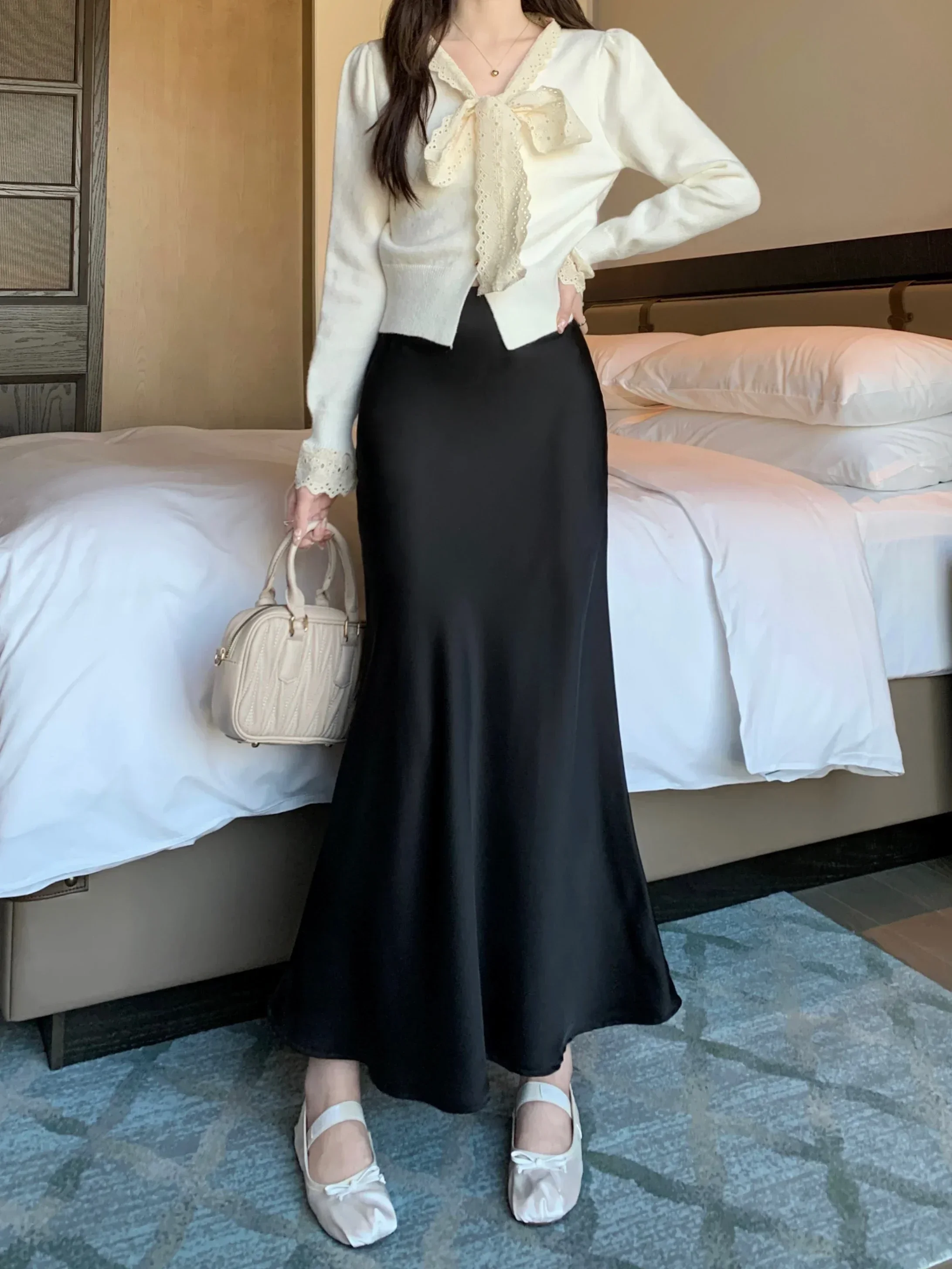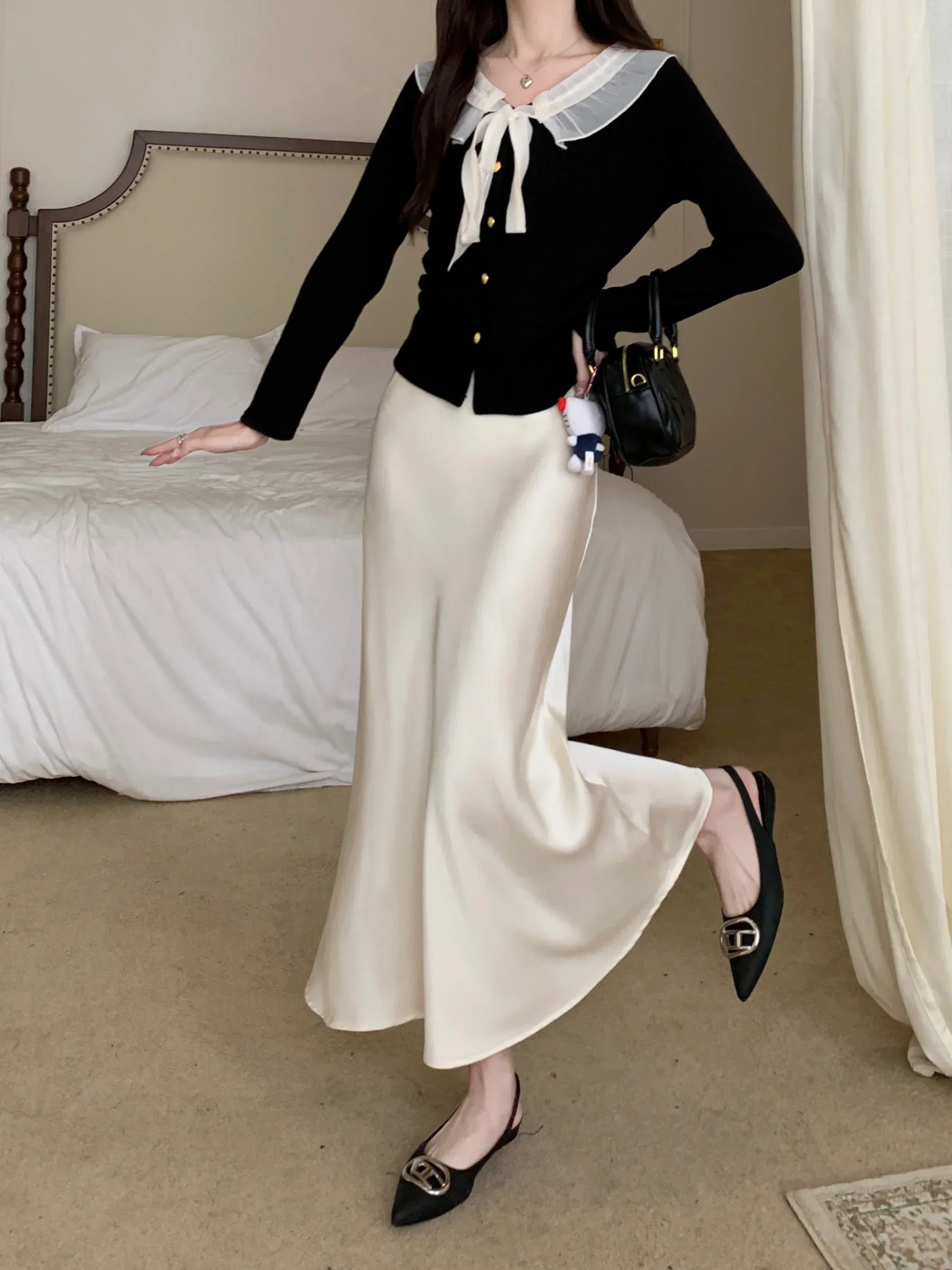 Spring Summer Women's Long Skirt High Waist Satin Silk A-line Skirt Ladies Korean Fashion Solid Pink Fishtail Skirts for Women