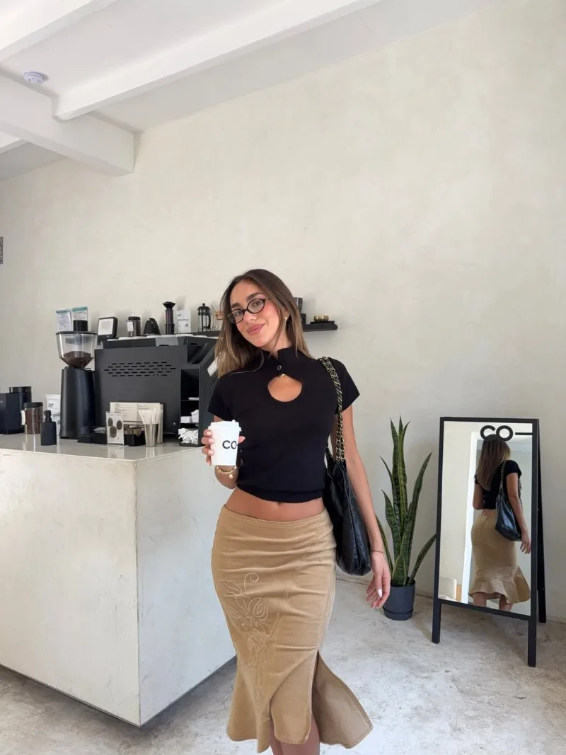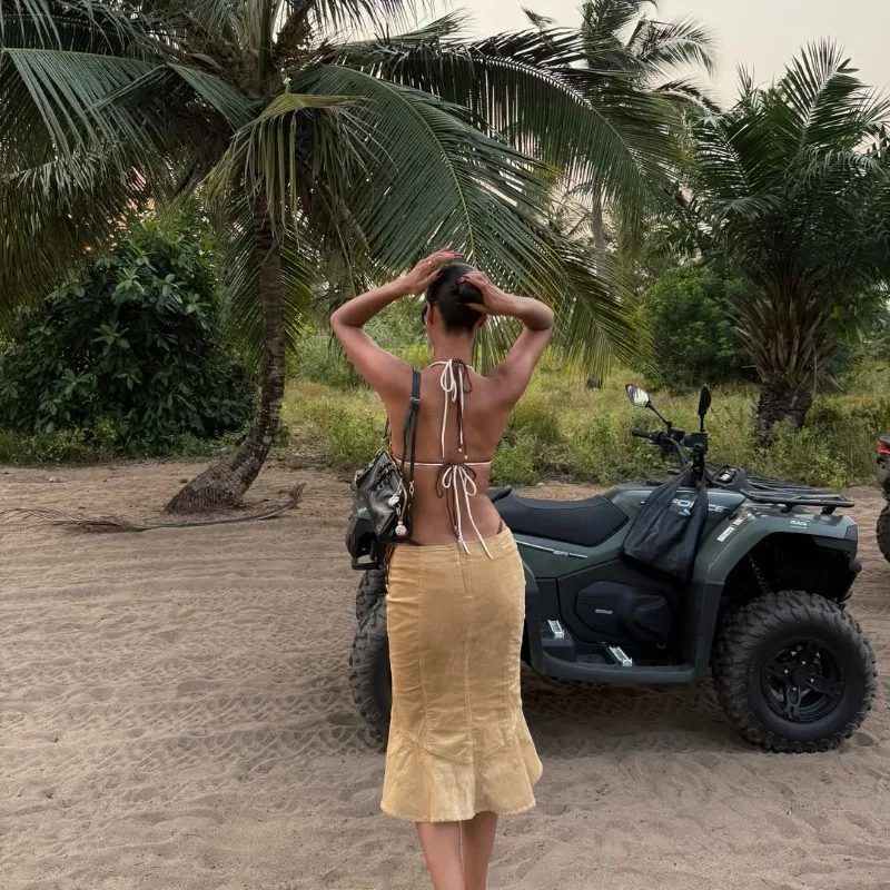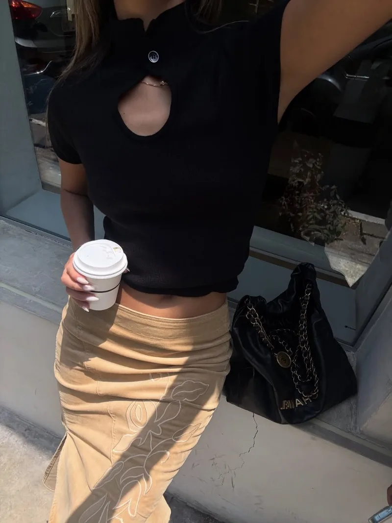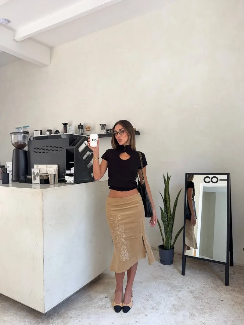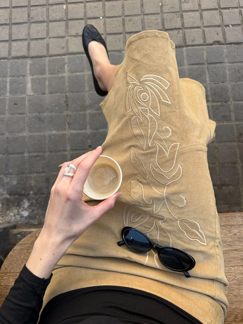 Trendix Women's Vintage Midi Skirt 2026 Summer High Waist Slim Ruffle Fishtail Skirts Party Side Slit Elegant Embroidery Skirt