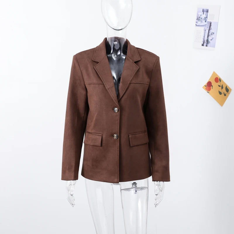Women 's Suede jacket Vintage Laple Full Sleeve Pockets Thicken Outwears Female 2025 Spring Fashion New Lady Demi-season jacket