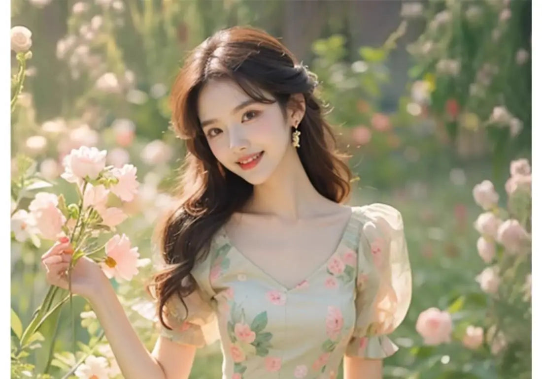 Beautiful Temperament Super Good-looking High-end Exquisite Waist-hugging Floral Puff Sleeve Dress for Women