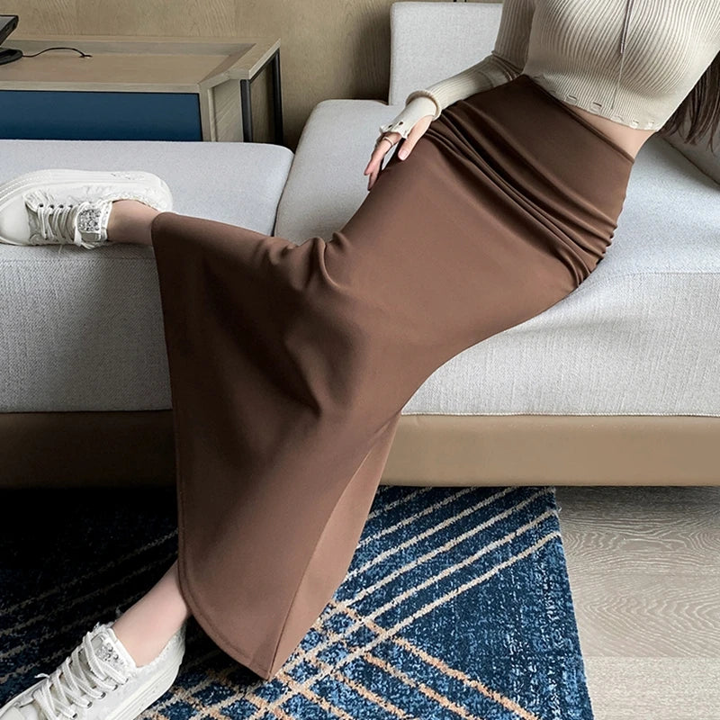 Elegant Fishtail Long Black Skirts Women 2026 High Waist Streetwear Y2k Clothes Korean Style Slim Office Lady Harajuku Mid Skirt