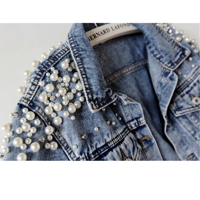Korean 2026 Spring Autumn Edition Heavy Industry Fashion Nail Bead Short Denim Coat Women's Nine inch sleeve Cowboy Jackets tops