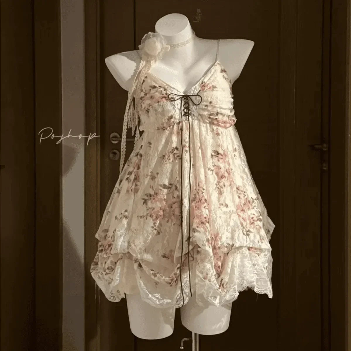 New Vintage Summer Women Sets Elegant Ruffle Lace Chiffon Design Mini Skirt Suit Fairy Female Sweet Korean Fashion Outfits 2025